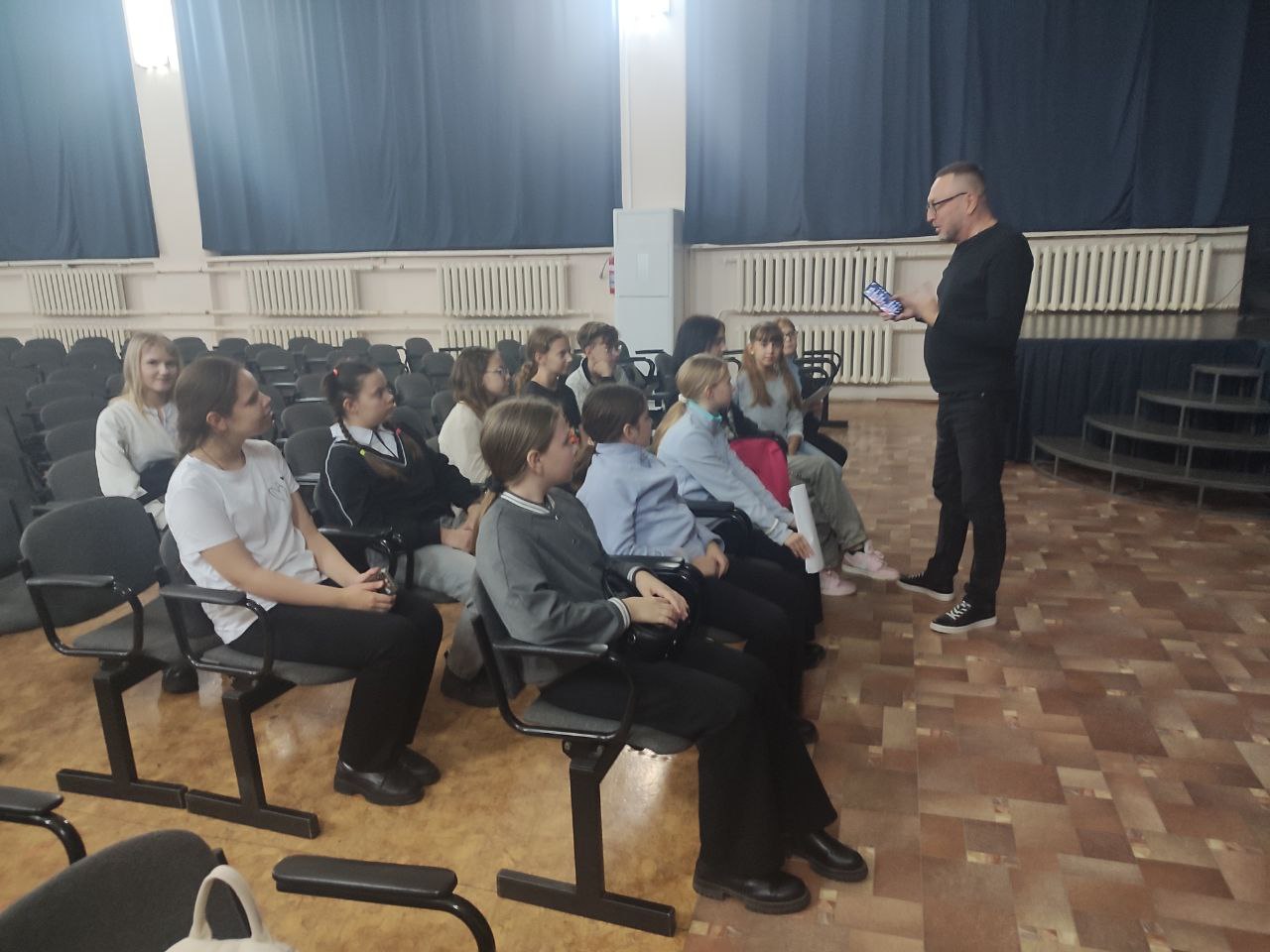 5 ноября во Дворце творчества детей и молодежи состоялось массовое мероприятие с демонстрацией авторского спектакля педагога Олега Клабукова «Бумеранг». Спектакль впервые прошел весной этого года, а теперь показан зрителям в обновленном составе в рамках фестиваля «Воспитание со смыслом».